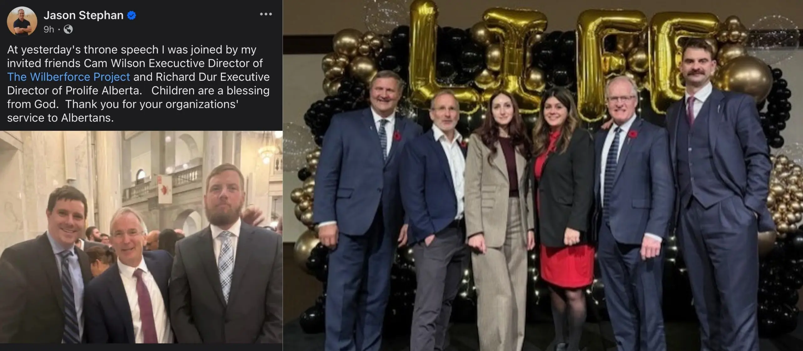 Two weeks later, Stephan attended the Wilberforce Project’s fundraiser banquet in Edmonton alongside fellow UCP MLAs Glenn van Dijken, Chantelle de Jonge, Jennifer Johnson, Grant Hunter and Dan Williams.