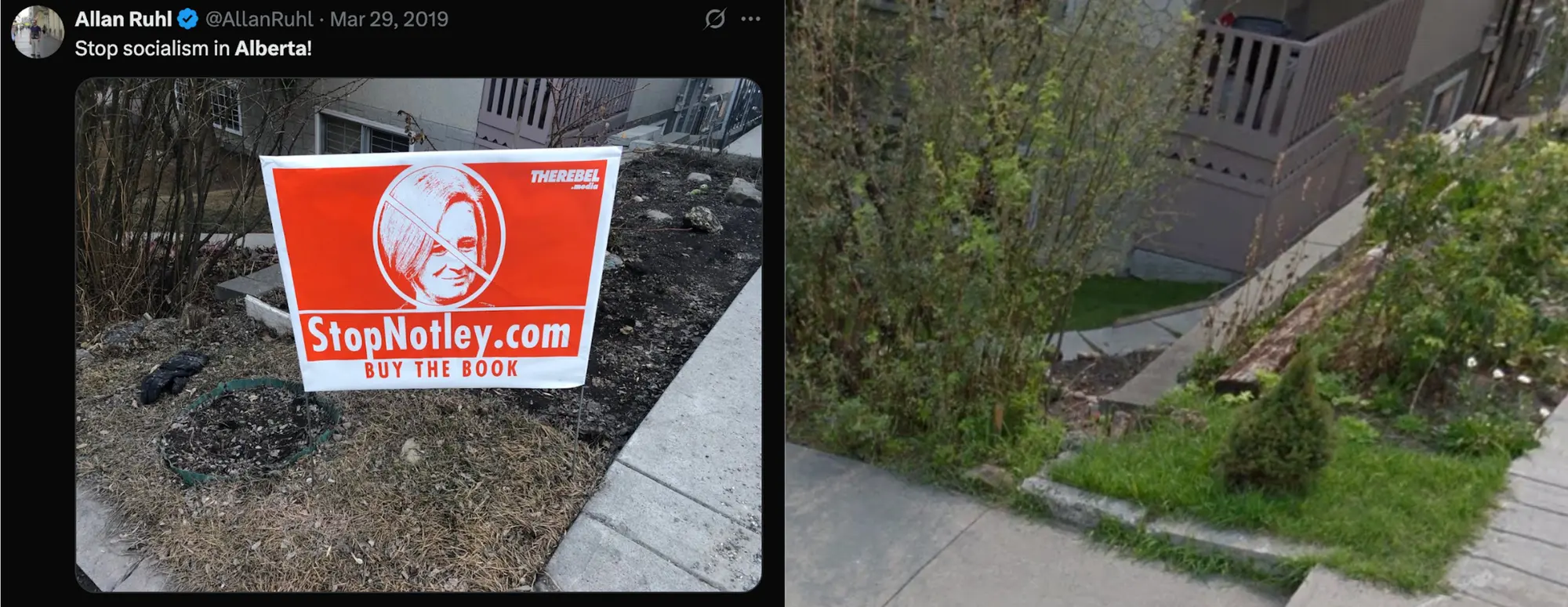 Allan Ruhl also posted pictures to his X account that appear to show him at the same address used by Murray Ruhl to register with Elections Alberta.